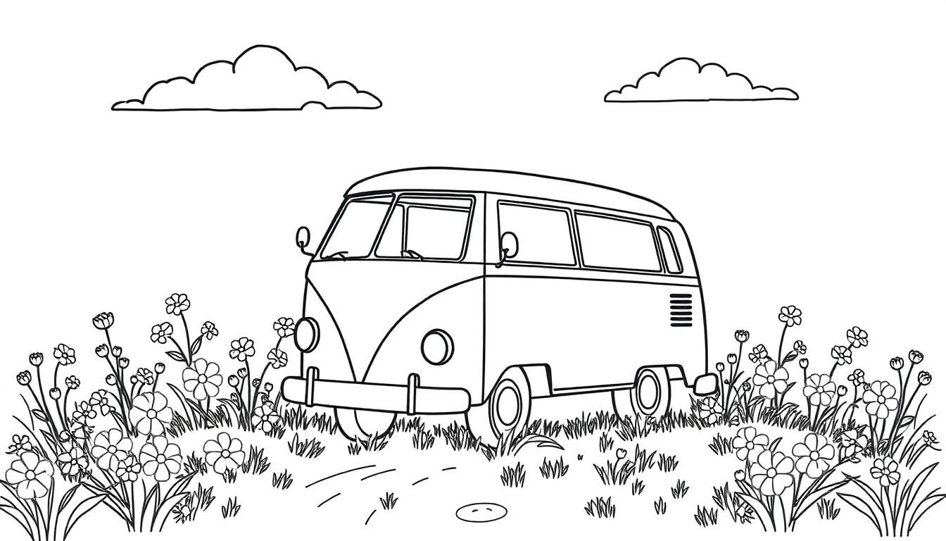 Prepare-se para uma explosão de criatividade com esta adorável página para colorir! Projetada para estimular a imaginação dos mais pequenos, esta imagem convida as crianças a darem vida a uma cena simples, mas encantadora. Com elementos facilmente reconhecíveis como uma nuvem fofa, um carro pronto para passear e uma flor delicada, esta página é ideal para desenvolver a coordenação motora fina e o reconhecimento de formas.