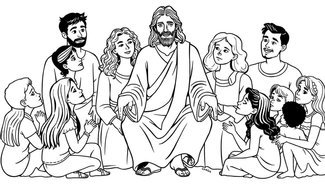 Página para Colorir: Um Momento de Amor e Ensino de Jesus